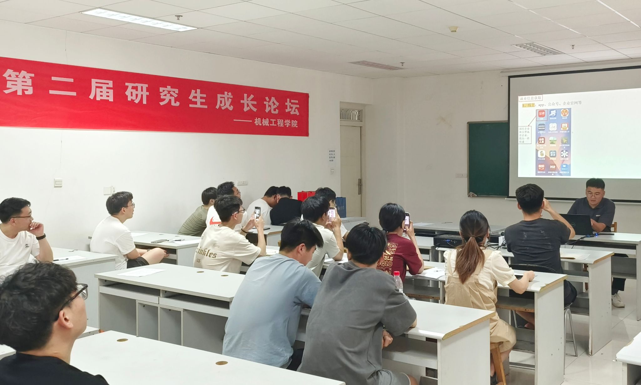 为进一步发挥朋辈榜样示范作用,营造良好学风,帮助学院研究生尽早做好学业及职业生涯规划,不断提升就业满意度,机械工程学院于6月19日在机械楼A207举办“第二届研究生成长论坛”。论坛邀请我院21级成功考博、考编、就业等六位优秀毕业生进行经验分享,部分在校研究生积极参会并与主讲人进行了交流互动,本次论坛由研究生辅导员张畔全主持。