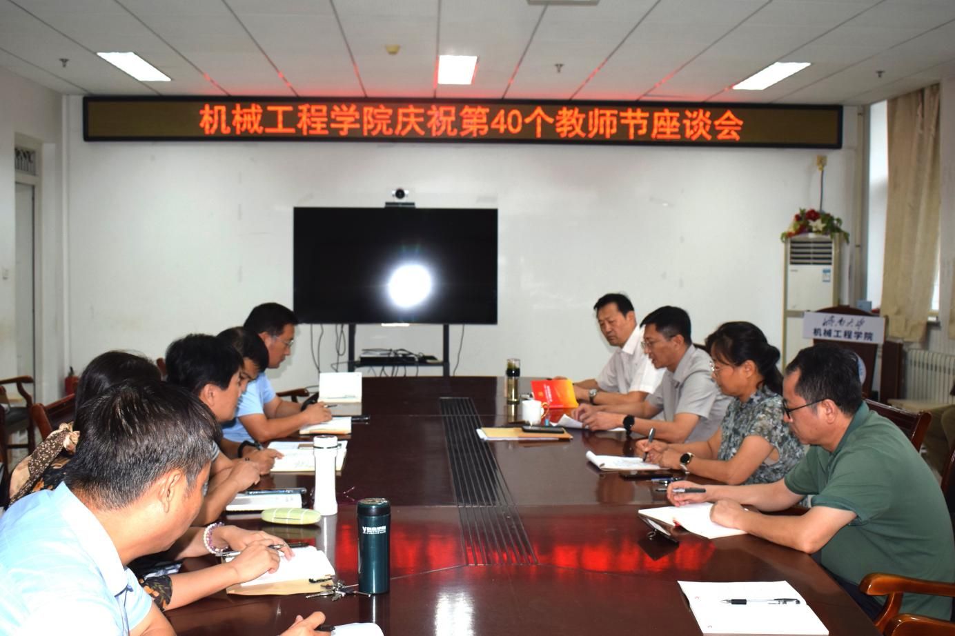 为进一步凝聚奋进力量,弘扬尊师重教的良好风尚,9月10日,机械工程学院在A324举行了庆祝第40个教师节座谈会,学院党委书记程涛主持,学院领导班子成员与来自教学、科研一线的多位优秀教师代表共聚一堂,共话教育理想,同庆节日喜悦。