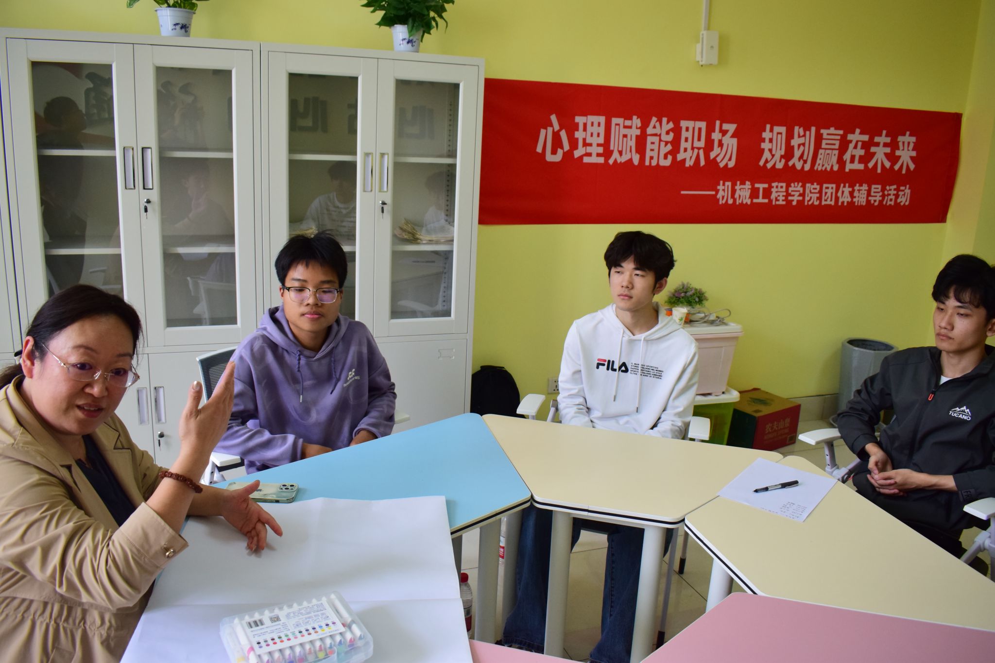 为切实做好新时代学生心理健康工作,引导学生明晰职业规划、激发成长动力,4月15日,机械工程学院举办了“心理赋能职场,规划赢在未来”心理团辅活动。本次活动由学校心理指导中心李素洁老师主持,通过沉浸式互动体验,帮助同学们探索未来方向、直面挑战,强化目标实现的信念与行动力。