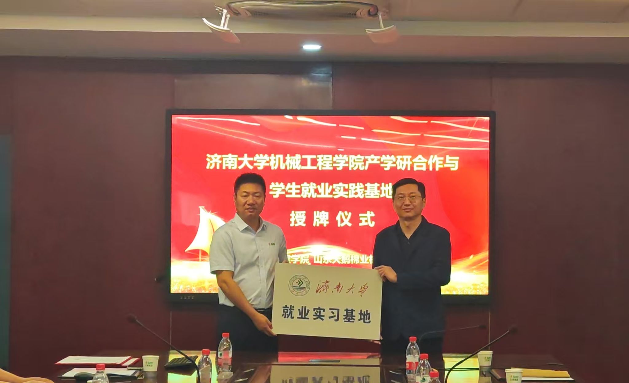 5月23日上午,机械工程学院党委书记程涛带队来到山东天鹅棉业机械股份有限公司开展访企拓岗活动并为“济南大学就业实习基地”揭牌。山东天鹅棉业机械股份有限公司董事长、总经理王新亭及双方相关人员参加了活动。