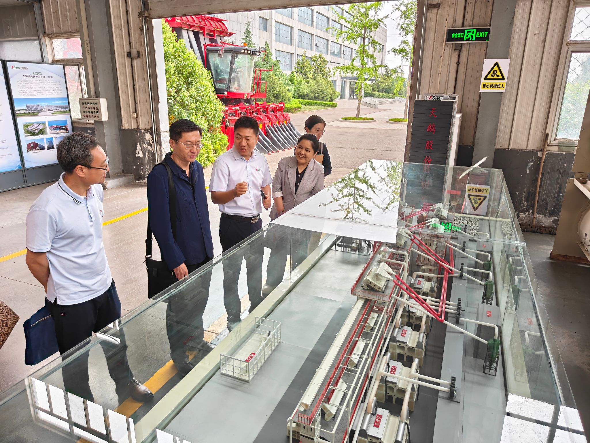 程涛一行实地参观山东天鹅棉业机械股份有限公司,并进行了座谈交流。王新亭对程涛一行表示热烈欢迎,并就山东天鹅棉业机械股份有限公司发展成就和今后的发展规划作了简要报告。王新亭介绍在公司的20多名济南大学毕业生都已成长为核心骨干,为打破国外高端采棉机对我国市场的长期垄断,成功研发出国内首款六行打包式采棉机做出了重要贡献。感谢济南大学在人才培养、科学研究等方面对企业多年来的大力支持。