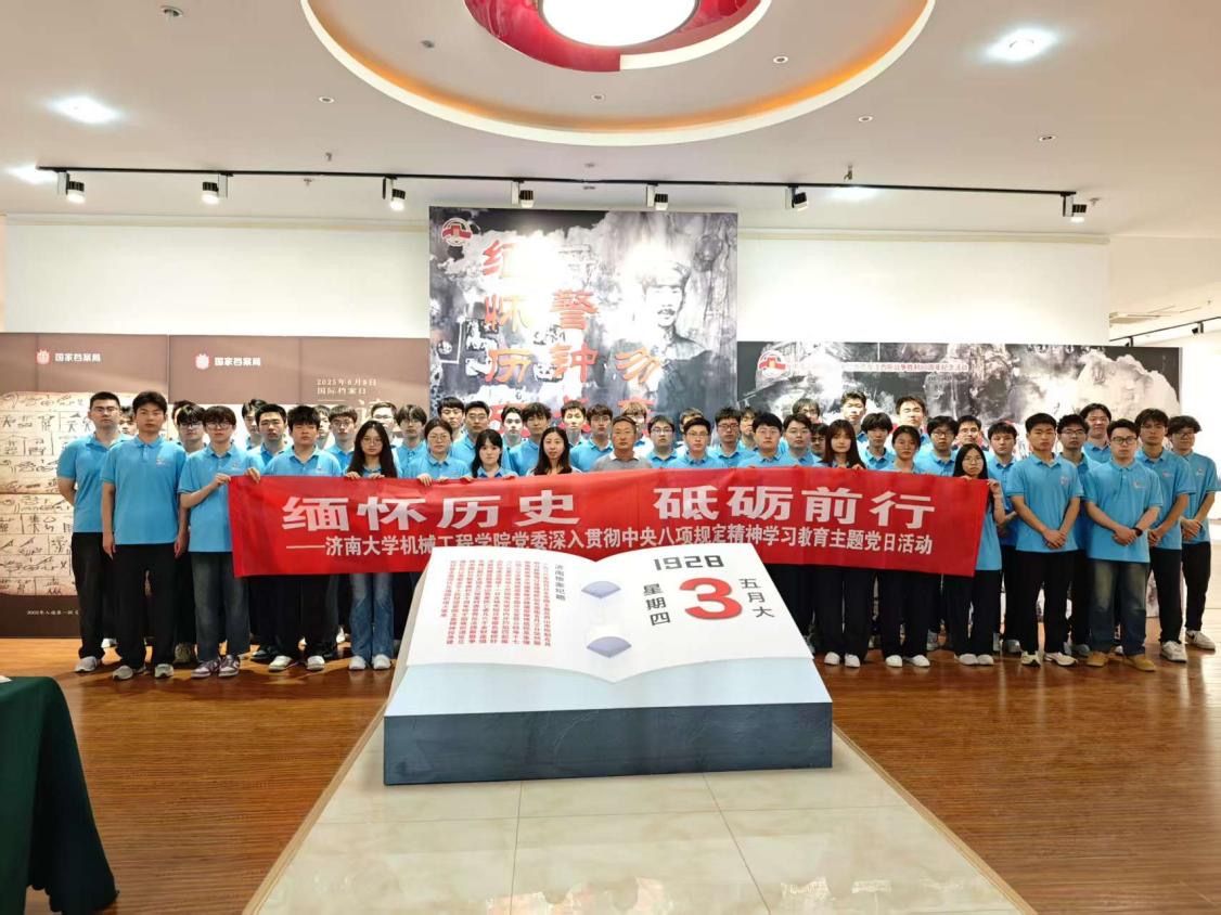 为持续深入贯彻中央八项规定精神学习教育, 缅怀革命先烈,传承红色基因,6月18日机械工程学院党委开展“缅怀历史,砥砺前行”主题党日活动,前往舜道艺术馆参观《缅怀历史 警钟长鸣 勿忘国耻——济南惨案档案图片展》。