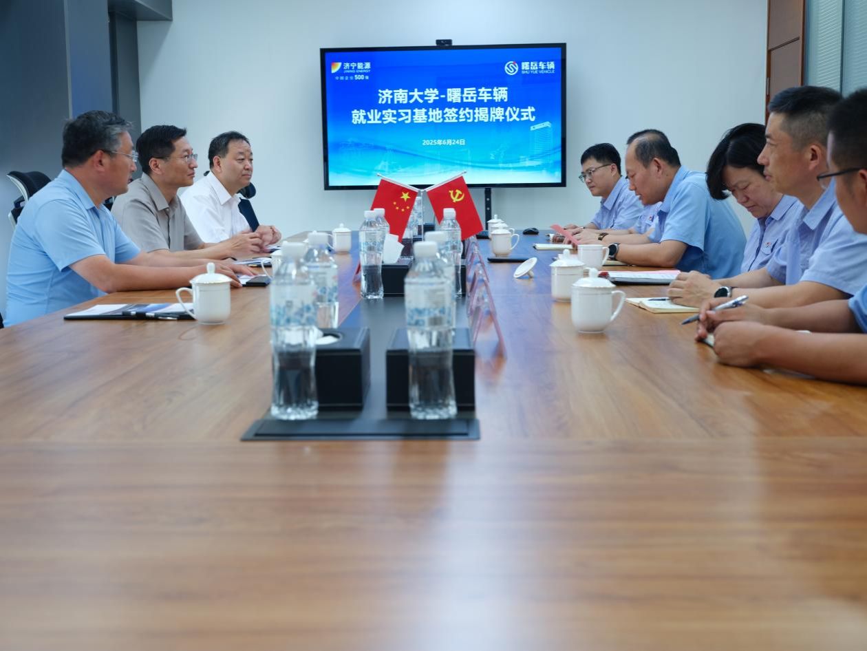 6月24日上午,机械工程学院党委书记程涛带队前往山东曙岳车辆有限公司开展访企拓岗活动并为“济南大学就业实习基地”揭牌。曙岳车辆党支部书记、总经理刘现允及双方相关人员出席活动。