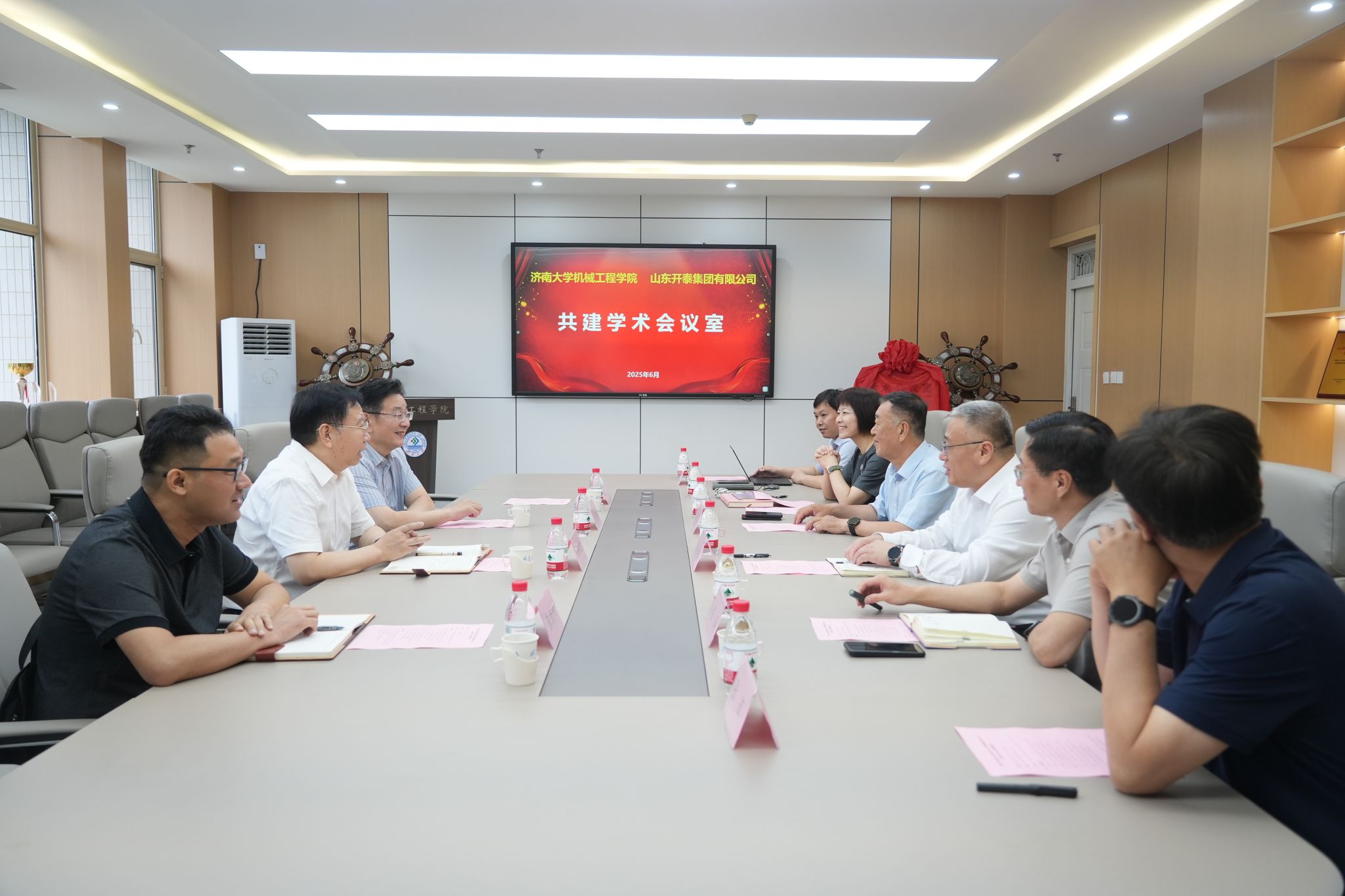 6月27日,为深化产教融合,推动校企协同创新,济南大学与山东开泰集团共建学术会议室揭牌仪式在机械工程学院会议室举行。山东开泰集团党委书记、总经理王瑞国率领企业专家出席仪式,济南大学党委常委、副校长黄加栋、泰山学者王守仁教授以及机械工程学院领导班子共同参加仪式。