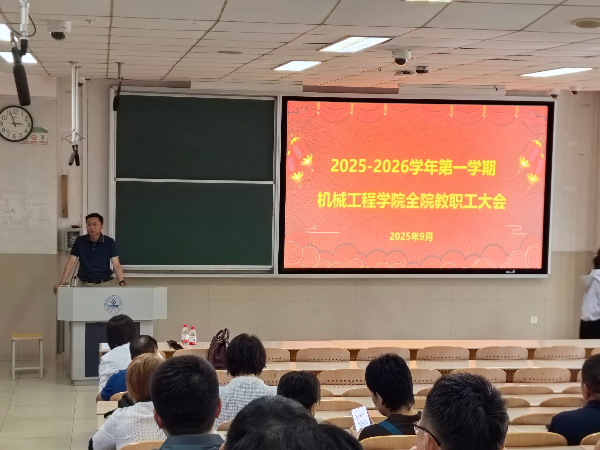 9月7日,机械工程学院召开全体教职工大会,传达学习学校四届七次全委会扩大会议精神。学院党委班子成员及全体教职工参加会议,会议由学院党委书记程涛主持。