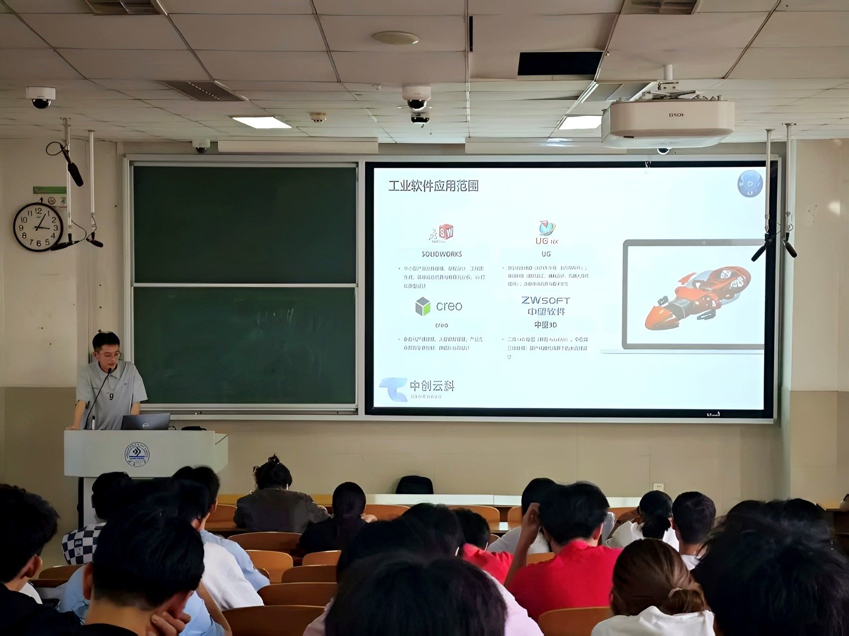 学院举办科技文化艺术节首场讲座,吸引100余名师生参会,特邀中创云科教育科技有限公司王晨宇经理主讲工业软件发展与应用。王经理主要围绕工业软件发展历程、不同软件特点、SolidWorks软件及插件应用展开讲解,结合案例演示3D建模、仿真分析等功能,重点介绍了从设计到制造的集成解决方案,内容兼具专业性与实用性。现场学生反应热烈,专注记录关键知识点,尤其对SolidWorks的3D PMI标注、机电协同设计等功能表现出浓厚兴趣。答疑环节中,学生踊跃提问,涵盖软件学习路径、赛事应用技巧等问题,王经理逐一细致解答。与会学生表示,讲座不仅明晰了工业软件在机械设计中的核心作用,还为后续参与科创竞赛、毕业设计提供了技术方向,更激发了探索数字化设计的热情。此次讲座为科技文化艺术节拉开良好序幕,为师生搭建了工业软件学习交流平台,助力提升学生工程实践与创新能力。