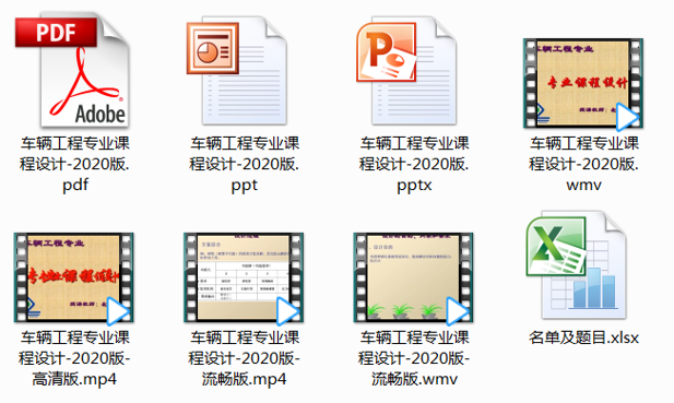 为保证网络教学的顺利实施,车辆工程专业老师首先进行适应性备课。根据未来教学可能遇到的网络堵塞问题、学生回看和实时学习等问题,分别将教学课件制作成普通版、PDF版、视频流畅版、视频高清版等多个版本(如图1所示),以应对各种可能出现的各种情况,保证教学需要。