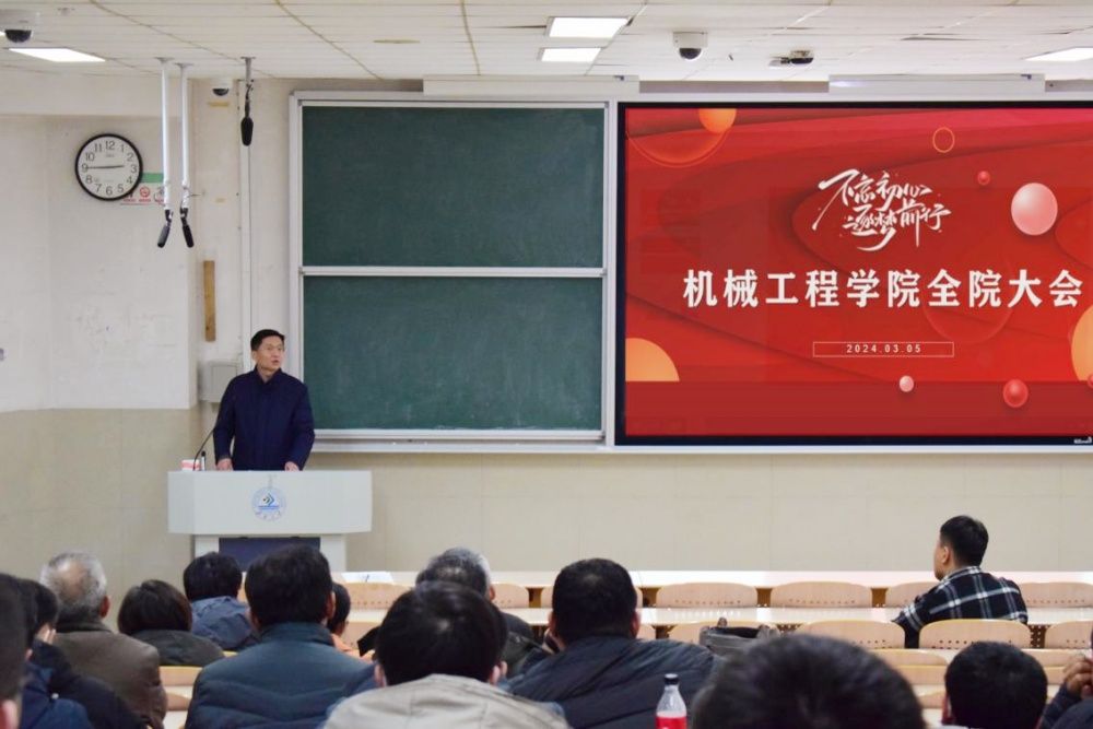 3月5日,机械工程学院召开全体教职工大会,学院领导班子成员及全体教职工参加会议,学院党委书记程涛主持会议。